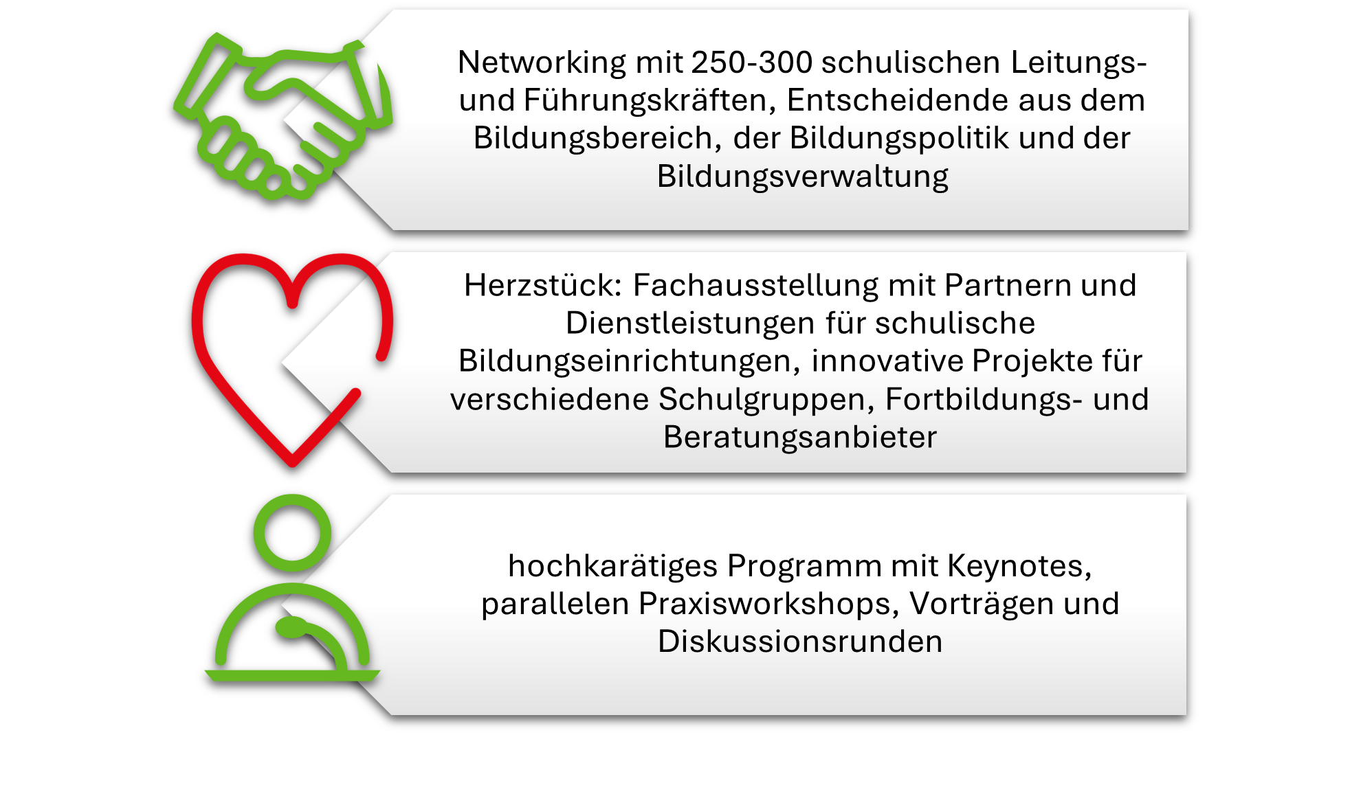 Im Fokus stehen aktuelle Herausforderungen wie wirksame Führung und Personalentwicklung, Achtsamkeit und Gesundheit in belasteten Zeiten, die digitale Transformation von Schule sowie Fragen von Haltung, Werteorientierung und gesellschaftlicher Verantwortung. Der Kongress schafft eine Plattform, auf der Impulse, Lösungen und Netzwerke entstehen – und eröffnet Partnern den direkten Zugang zu den maßgeblichen Entscheider:innen im Bildungswesen des mitteldeutschen Raums.